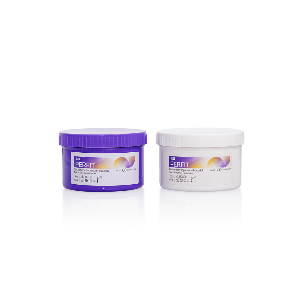 PERFIT Putty is an elastomeric impression material designed for accurate crown, bridge, inlay, and onlay impressions. It provides excellent dimensional stability, high elastic recovery, and strong tear resistance, making it suitable for precise two-step impression techniques when used with wash materials.