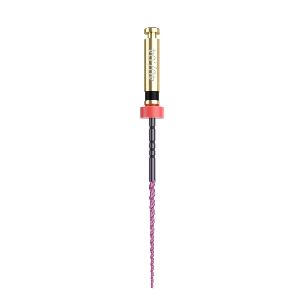 The NIC MH4 File is a heat-treated NiTi rotary file with a .04 constant taper, offering excellent flexibility and reduced shape memory. Designed to follow natural canal curvature closely, it minimizes the risk of ledging, transportation, and perforation while maintaining efficient shaping.